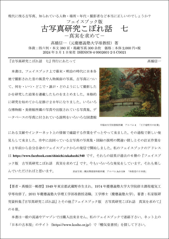 メッセージ欄に 「古写真こぼれ話7 購入希望」 とお書きください。